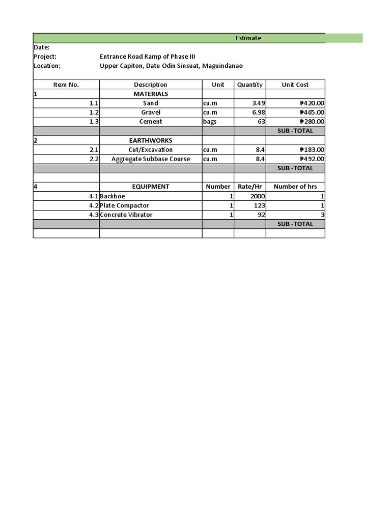 REVISED COST ESTIMATE MABULOD BRIDGE Structural Engineering Engineering