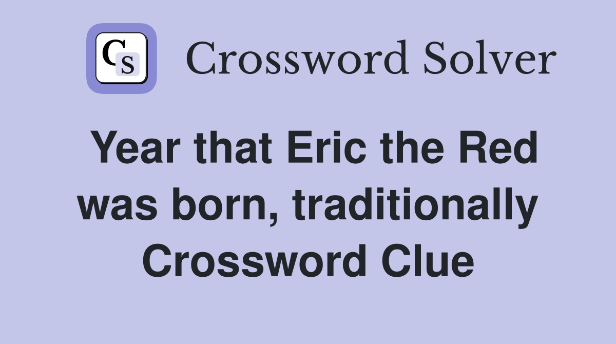 Year that Eric the Red was born traditionally Crossword Clue Answers