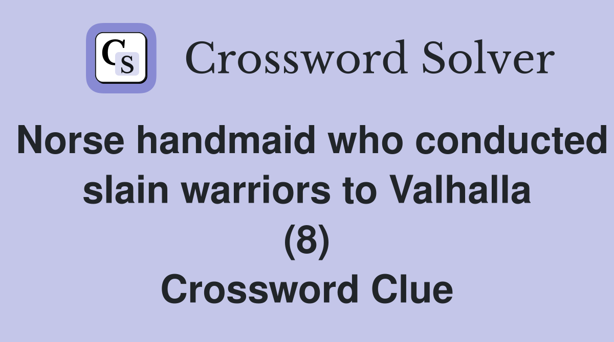 Norse handmaid who conducted slain warriors to Valhalla (8) Crossword
