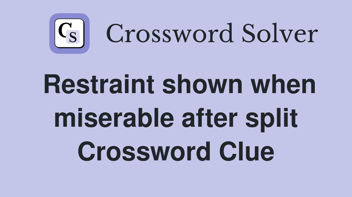 Restraint shown when miserable after split Crossword Clue Answers