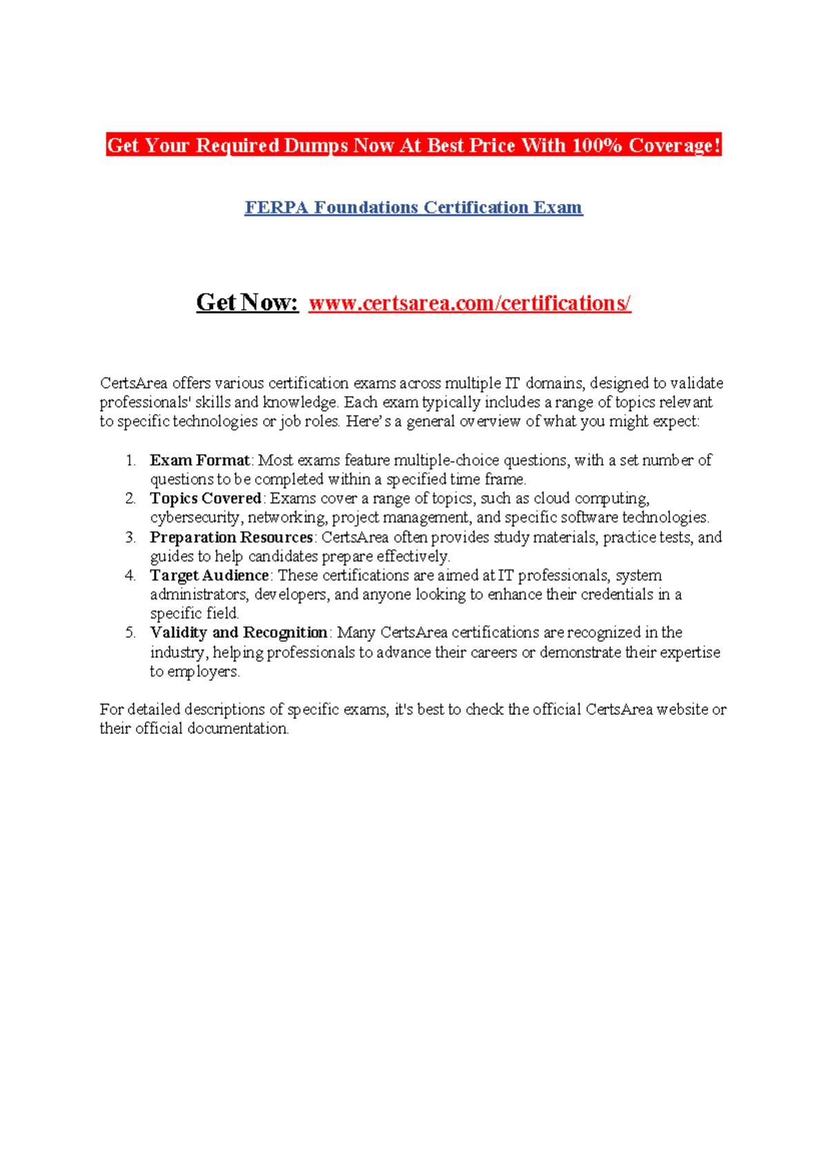 FERPA Foundations Certification Exam Get Your Required Dumps Now At