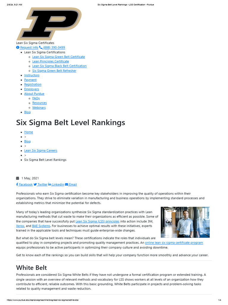 Six Sigma Belt Level Rankings LSS Certification Purdue PDF Six
