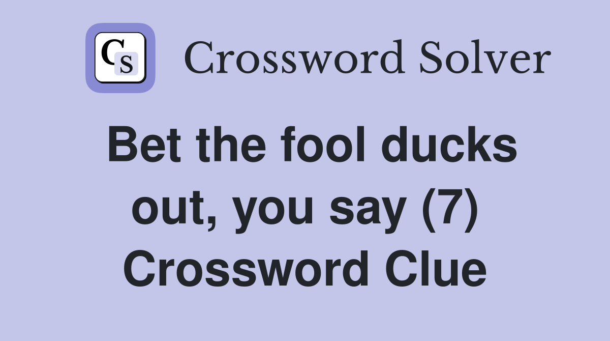 Bet the fool ducks out you say (7) Crossword Clue Answers