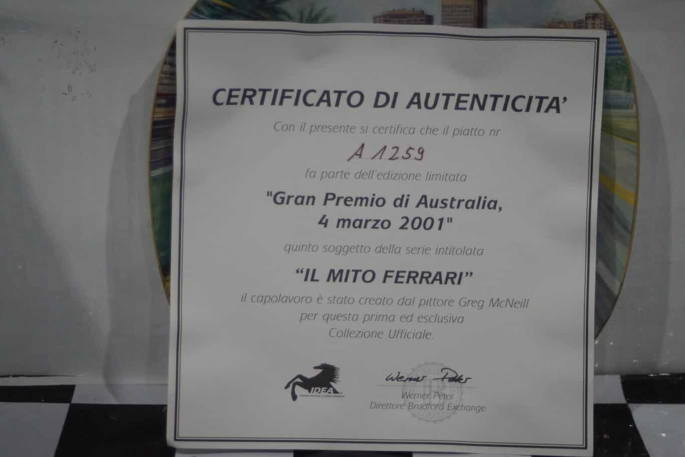 Bradford Exchange Gran Premio Di Australia 01 Ferrari Plate
