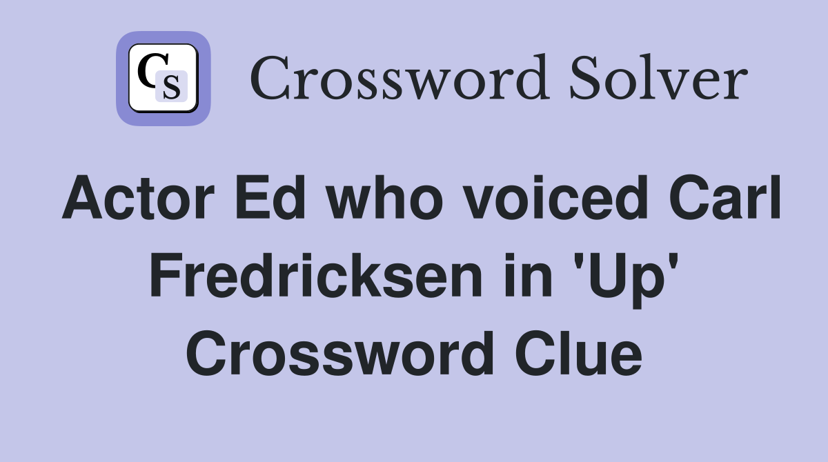Actor Ed who voiced Carl Fredricksen in #39 Up #39 Crossword Clue Answers