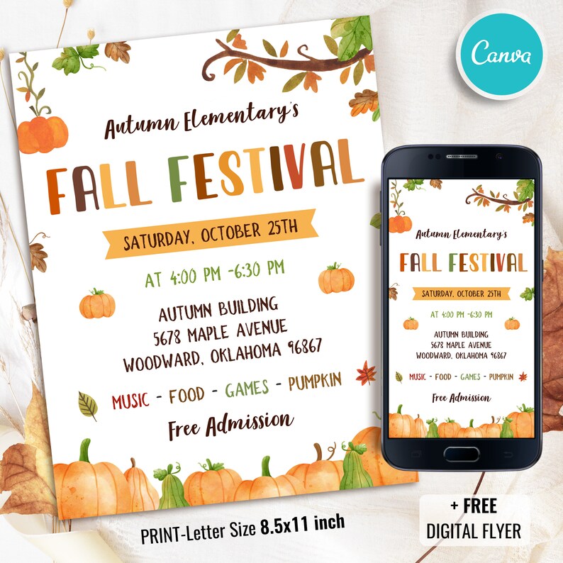 Fall Festival Flyer DIY Flyer Template Design Harvest Festival Invite