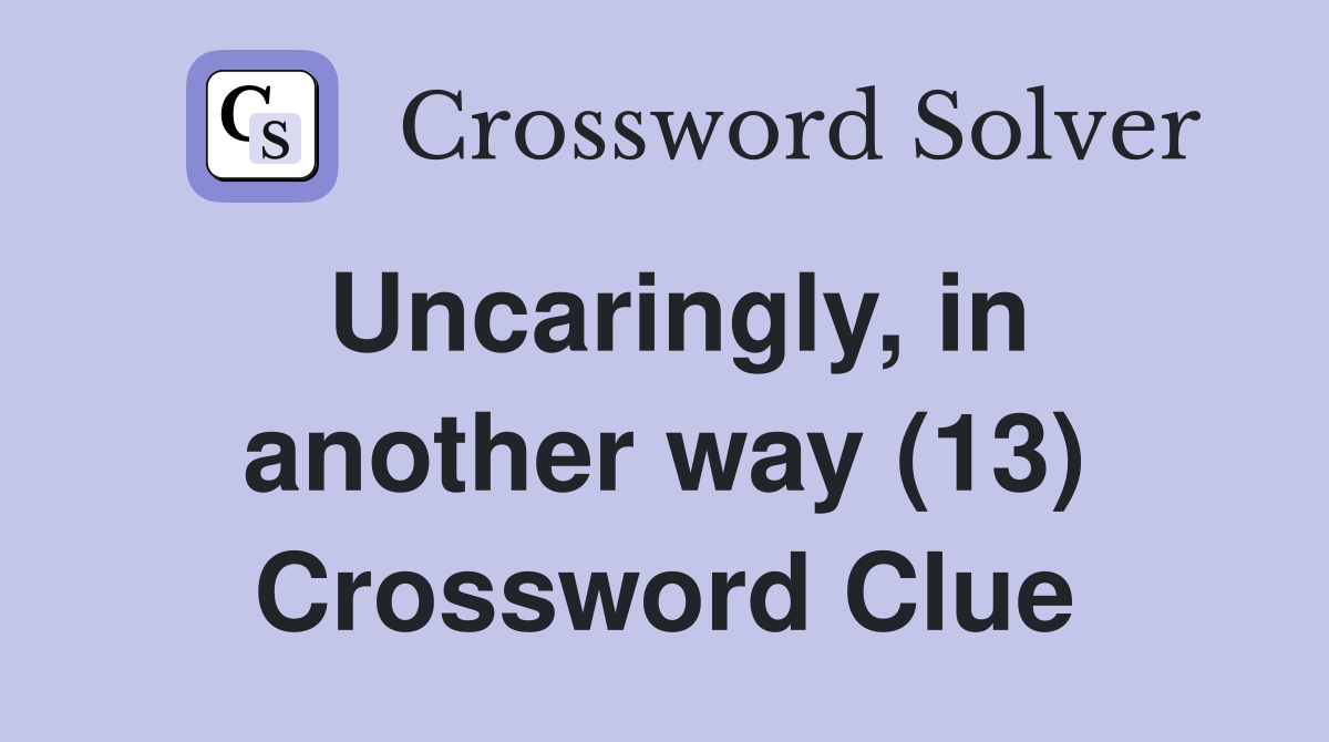 Uncaringly in another way (13) Crossword Clue Answers Crossword Solver