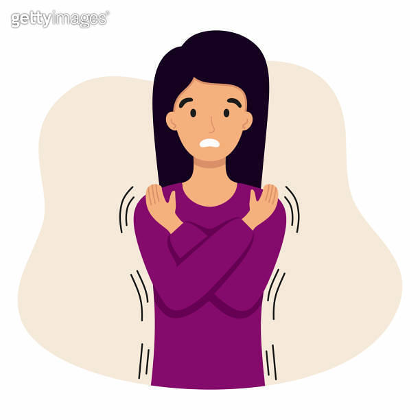 A girl with chills and a fever Symptoms of a viral infection 이미지