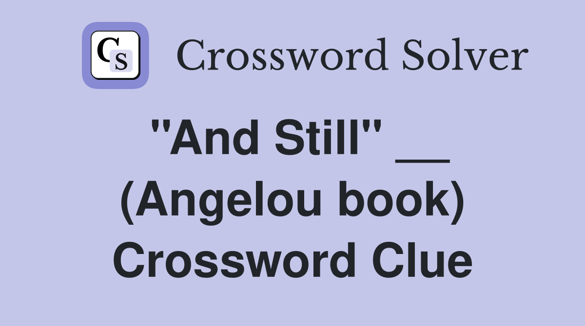 #39 #39 And Still #39 #39 (Angelou book) Crossword Clue Answers Crossword Solver