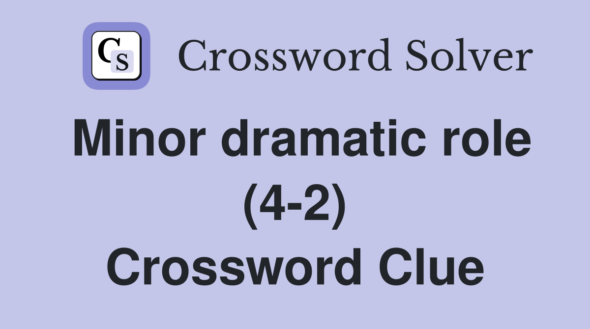 Minor dramatic role (4 2) Crossword Clue Answers Crossword Solver
