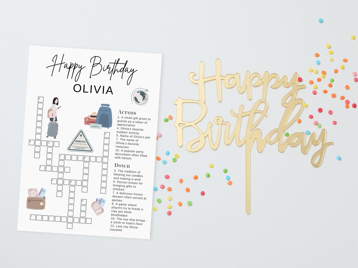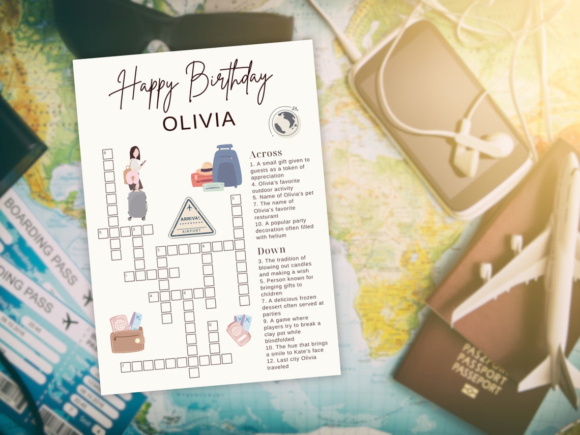 Traveler Birthday Party Crossword Puzzle Editable and Printable Small