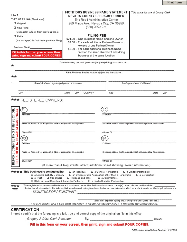 Nevada County Clerk Recorder Fictitious Business Name Statement PDF