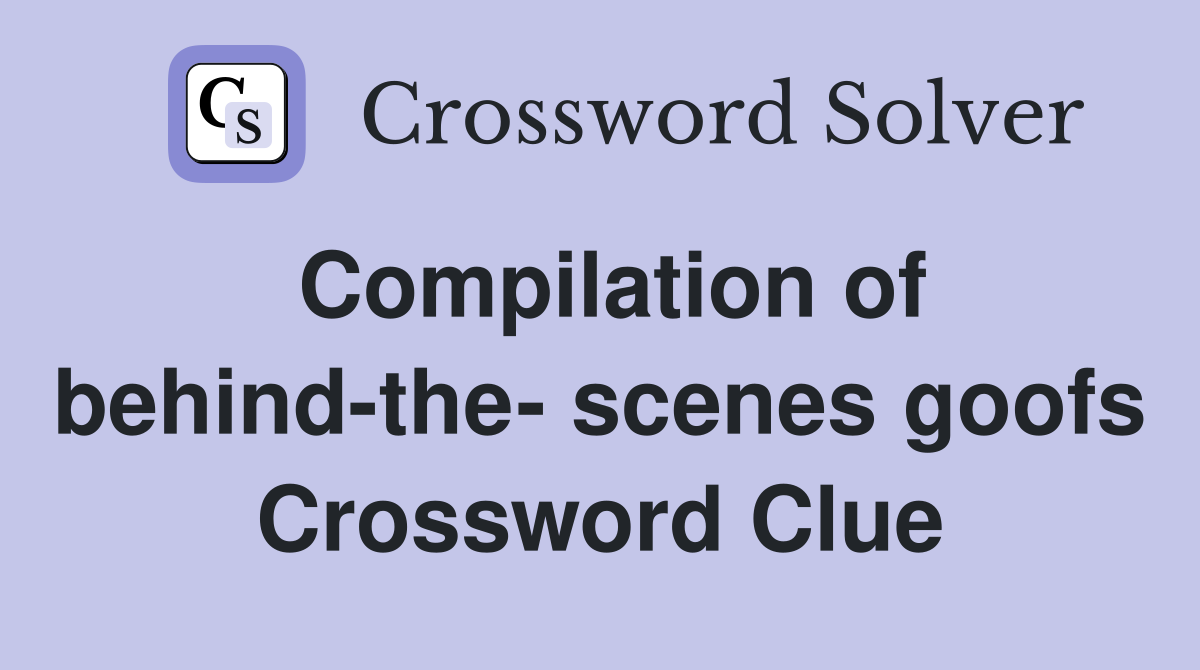 Compilation of behind the scenes goofs Crossword Clue Answers