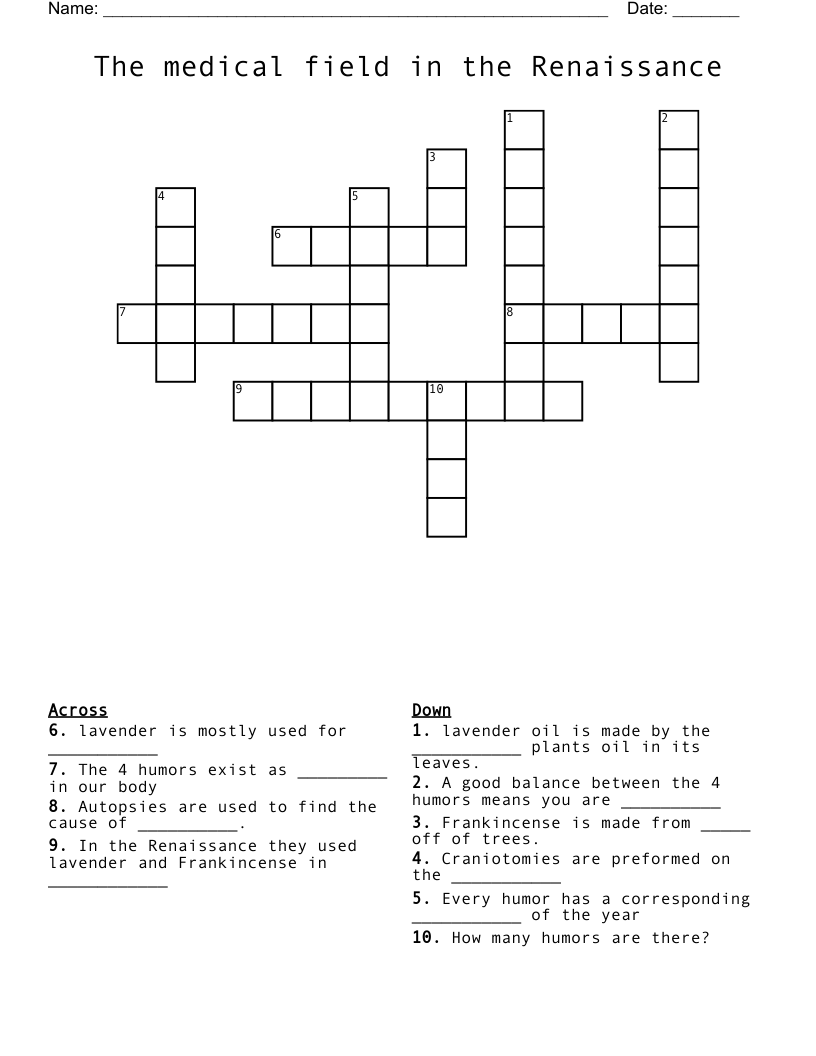 The medical field in the Renaissance Crossword WordMint