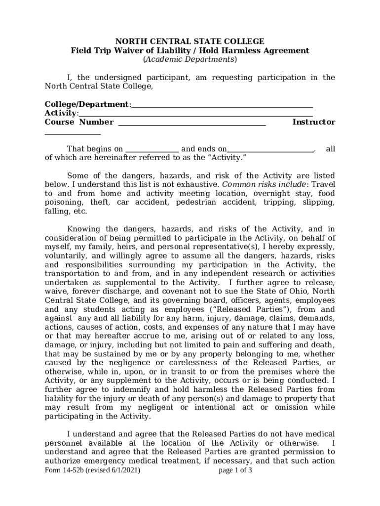 Field Trip Liability Waiver Template prntbl concejomunicipaldechinu