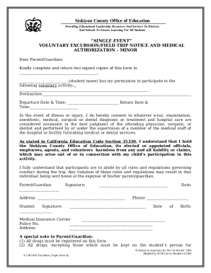 Minor Voluntary Excursion/Field Trip Waiver and medical Doc