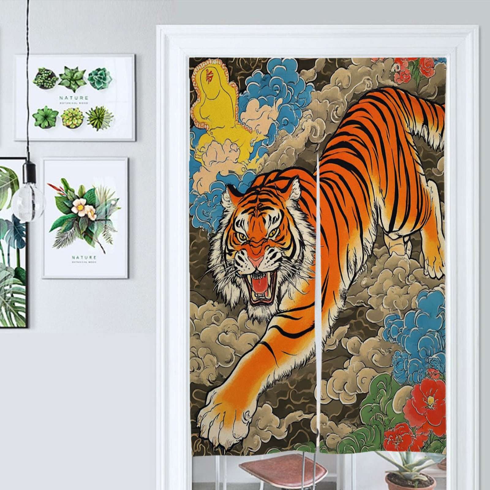 Fierce Tiger Majestic Clouds Flowers Art Door Curtain Nordic Living