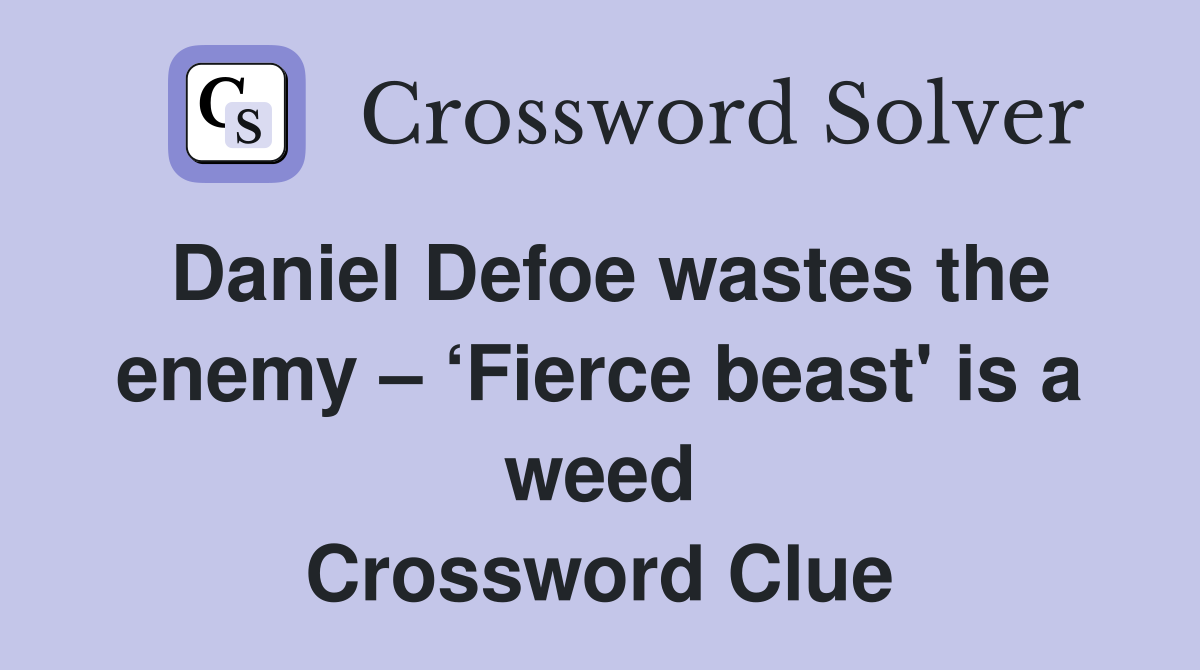 Daniel Defoe wastes the enemy Fierce beast is a weed Crossword