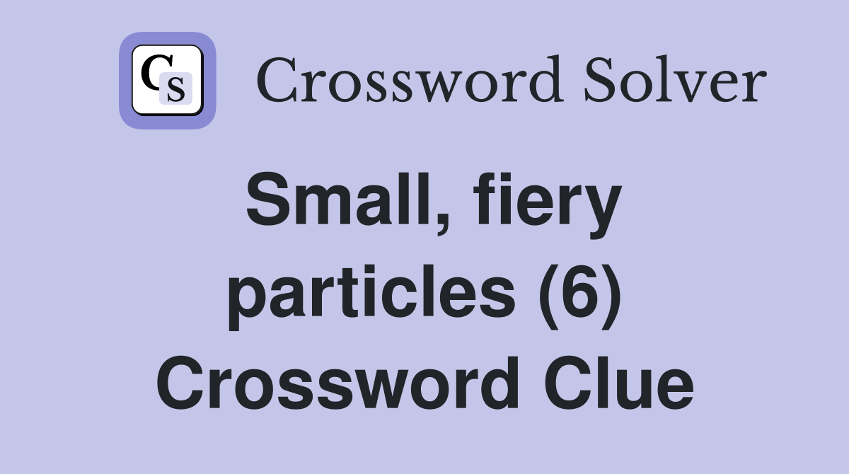 Small fiery particles (6) Crossword Clue Answers Crossword Solver