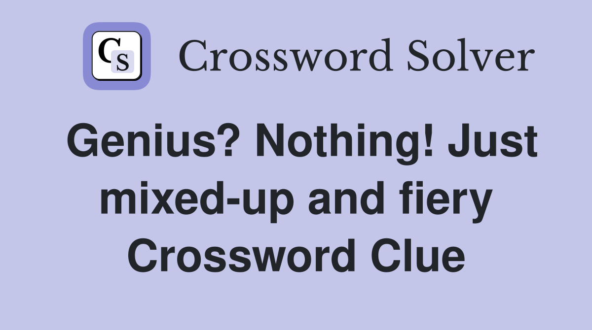 Genius? Nothing Just mixed up and fiery Crossword Clue Answers