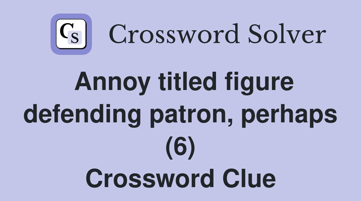 Annoy titled figure defending patron perhaps (6) Crossword Clue
