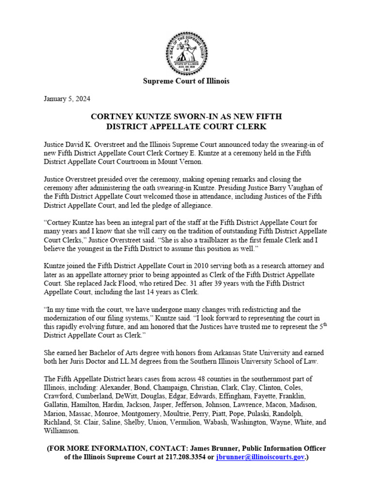 Cortney Kuntze Sworn In As New Fifth District Appellate Court Clerk