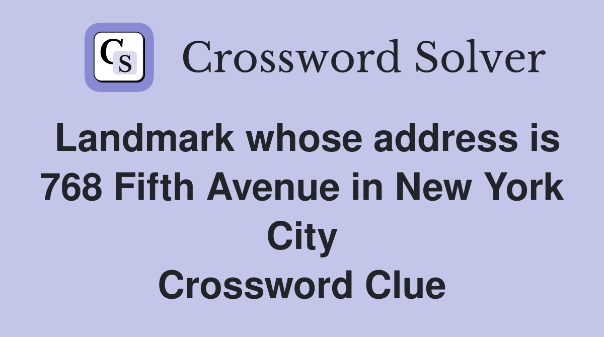 Landmark whose address is 768 Fifth Avenue in New York City Crossword