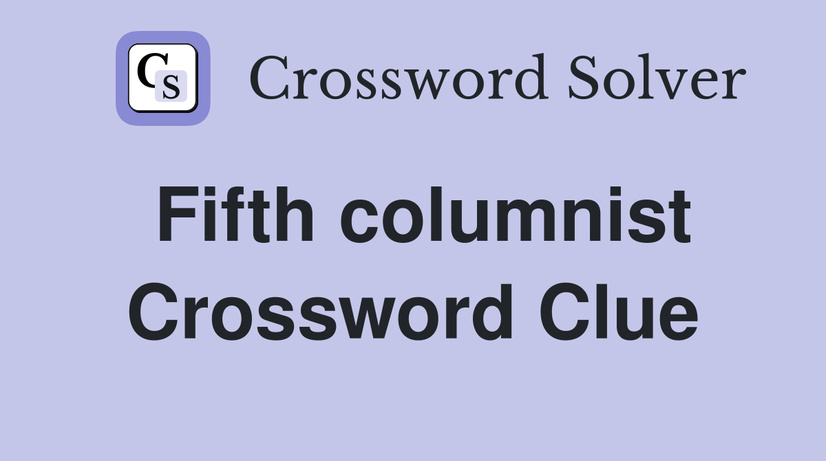 Fifth columnist Crossword Clue Answers Crossword Solver