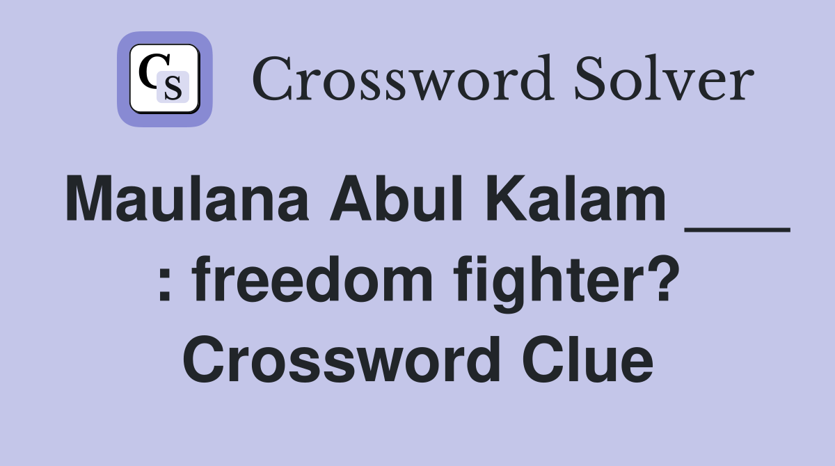Maulana Abul Kalam : freedom fighter? Crossword Clue Answers
