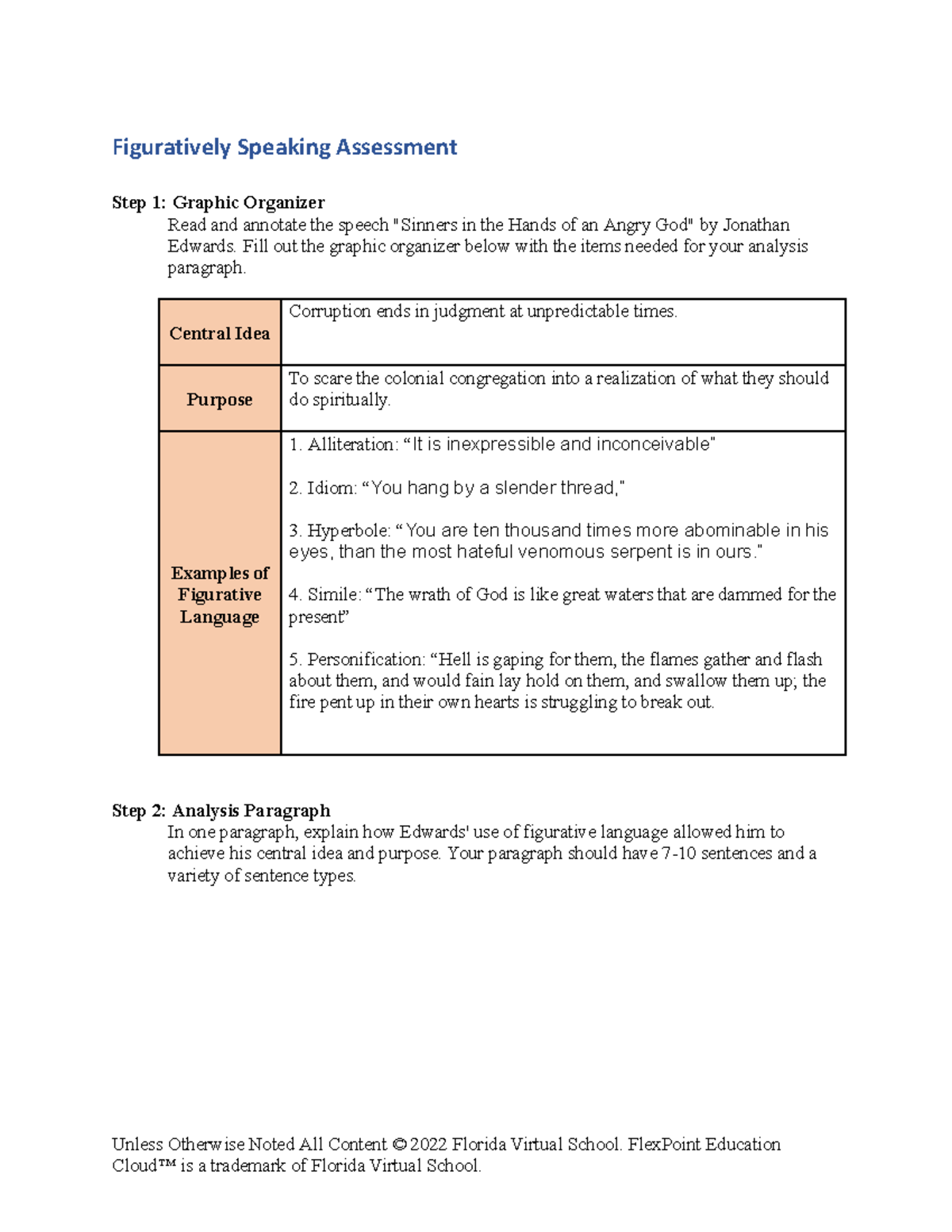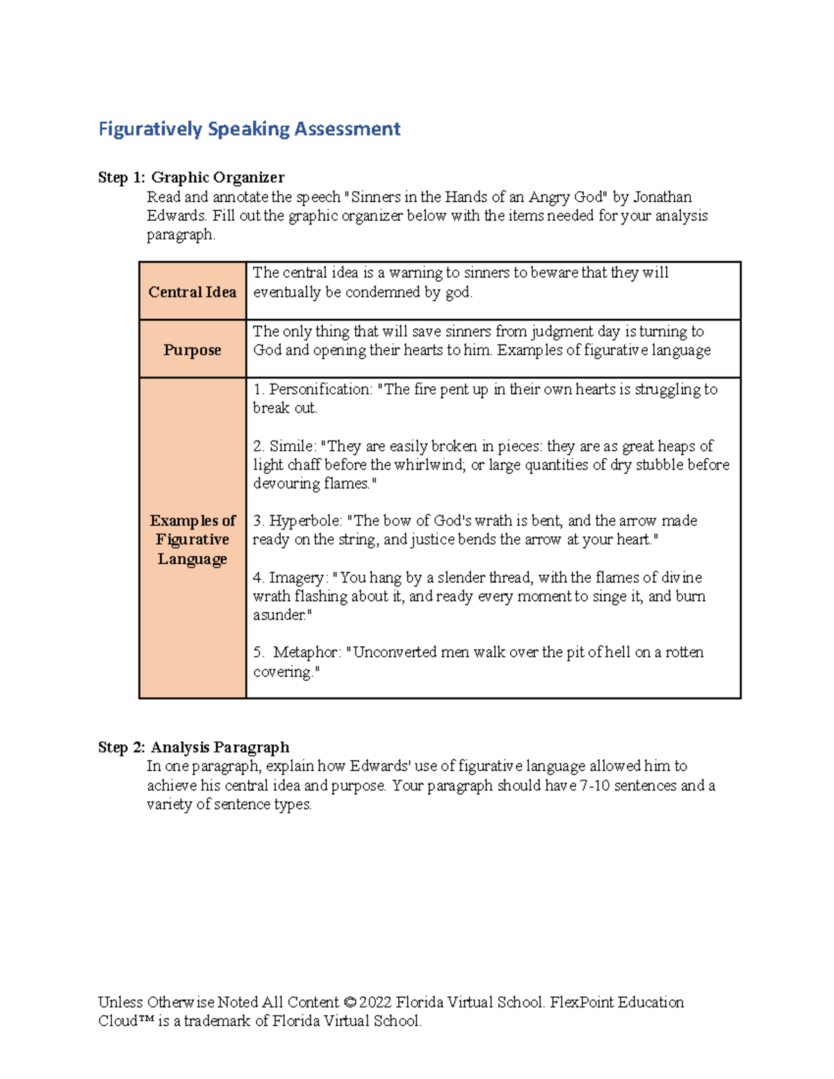 Figuratively speaking rubric Figuratively Speaking Assessment Step 1