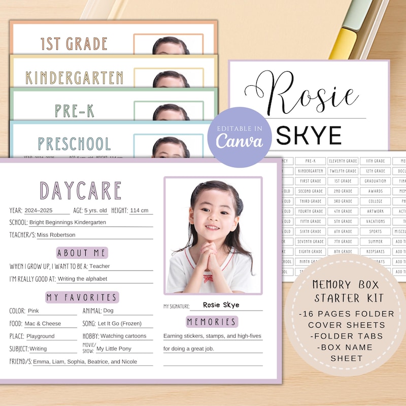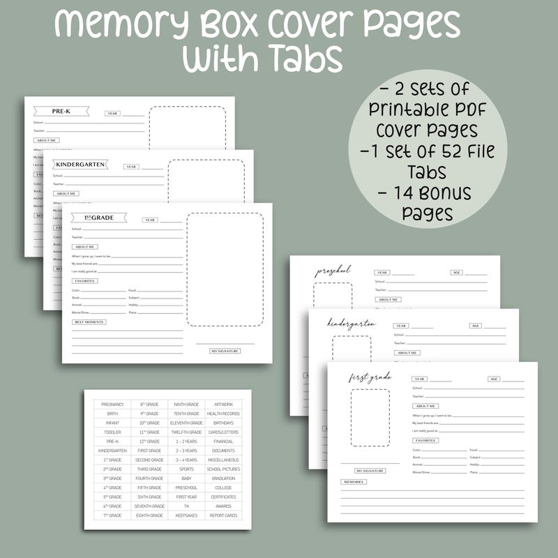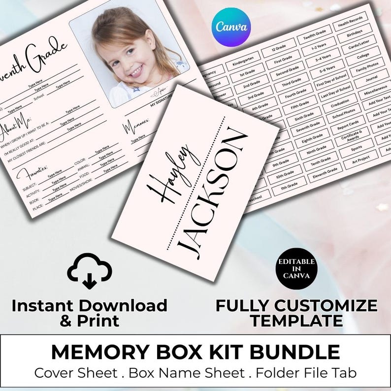 Editable School Memory Box Kit Printable School Keepsake Binder With