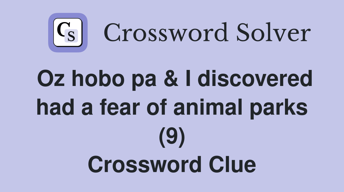 Oz hobo pa I discovered had a fear of animal parks (9) Crossword