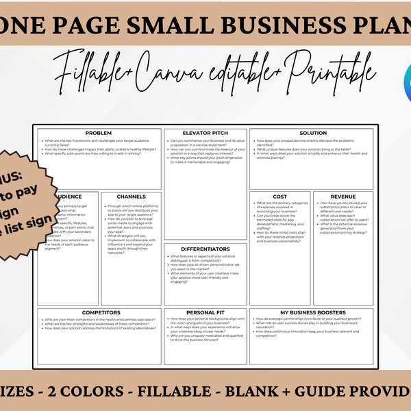 Business Plan Bundle: Fillable Printable Startup Planner (US Letter