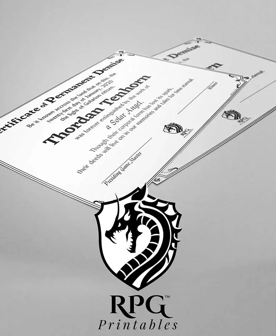 Pathfinder Character Death Certificate (Fillable) RPG Printables
