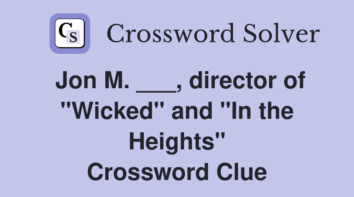 Jon M director of quot Wicked quot and quot In the Heights quot Crossword Clue