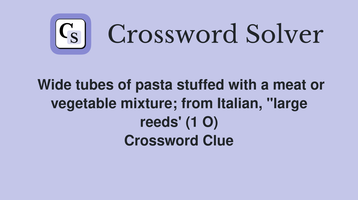 Here are some of the images for Filled Pasta Tubes Crossword Clue that we found in our website database.