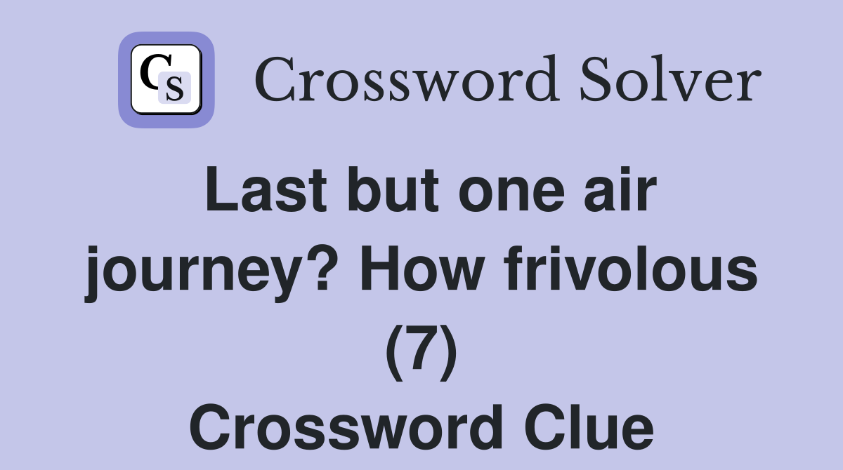Last but one air journey? How frivolous (7) Crossword Clue Answers