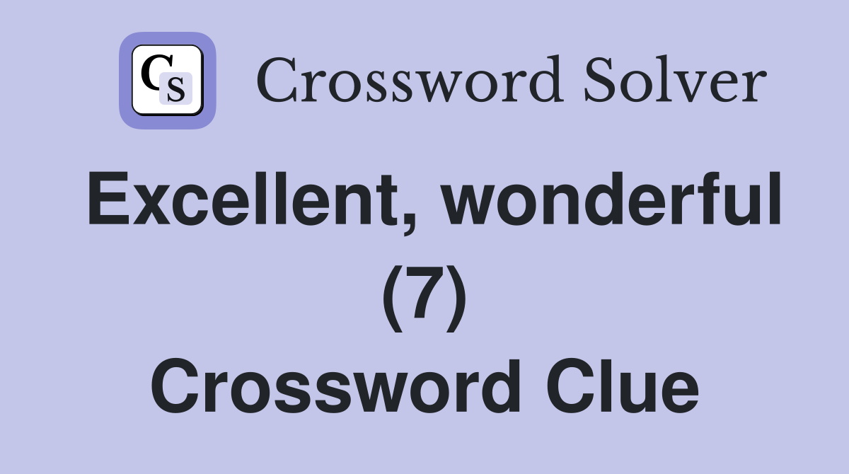Excellent wonderful (7) Crossword Clue Answers Crossword Solver