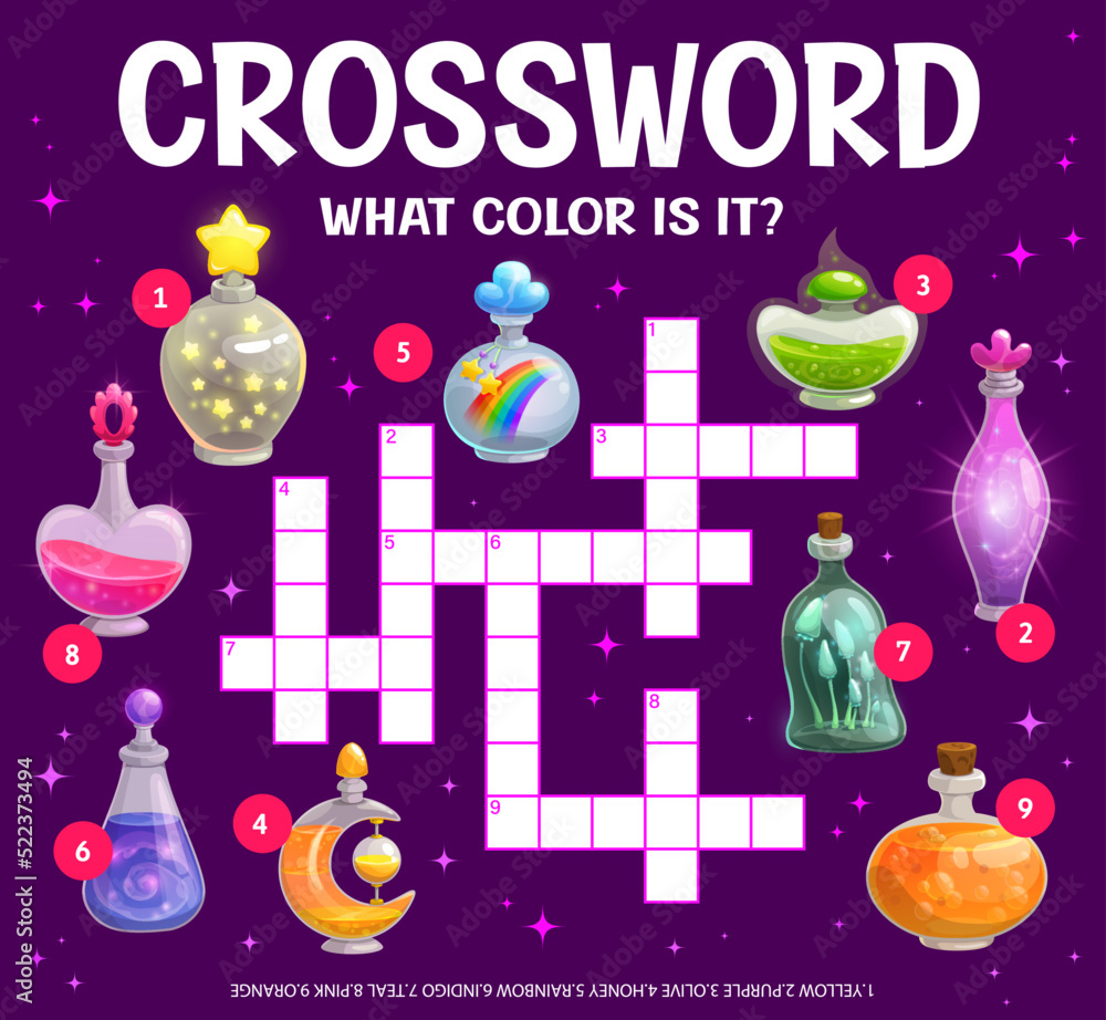 Find a color of magic potion bottles Crossword grid worksheet Find a