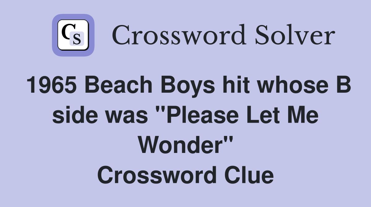 1965 Beach Boys hit whose B side was quot Please Let Me Wonder quot Crossword