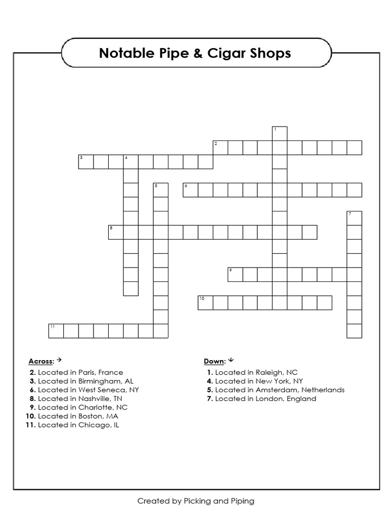 Notable Pipe Cigar Shops Crossword PDF