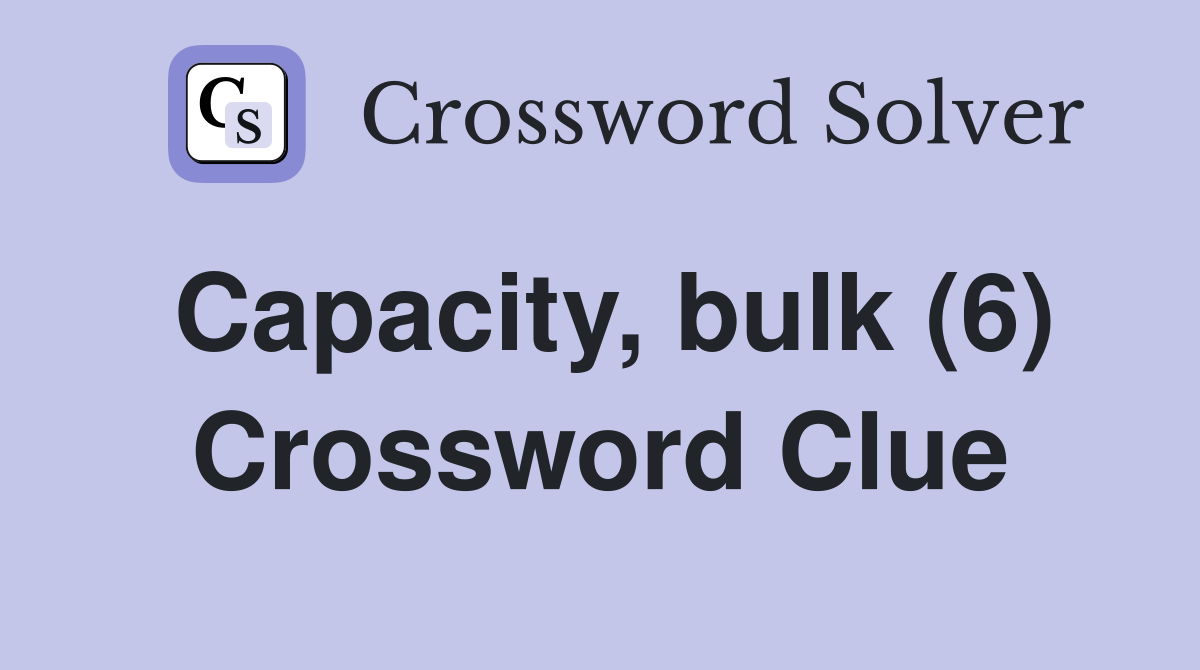 Capacity bulk (6) Crossword Clue Answers Crossword Solver