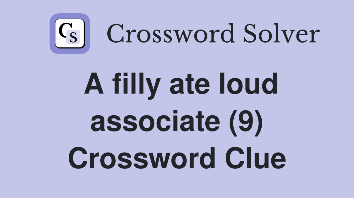 A filly ate loud associate (9) Crossword Clue Answers Crossword Solver