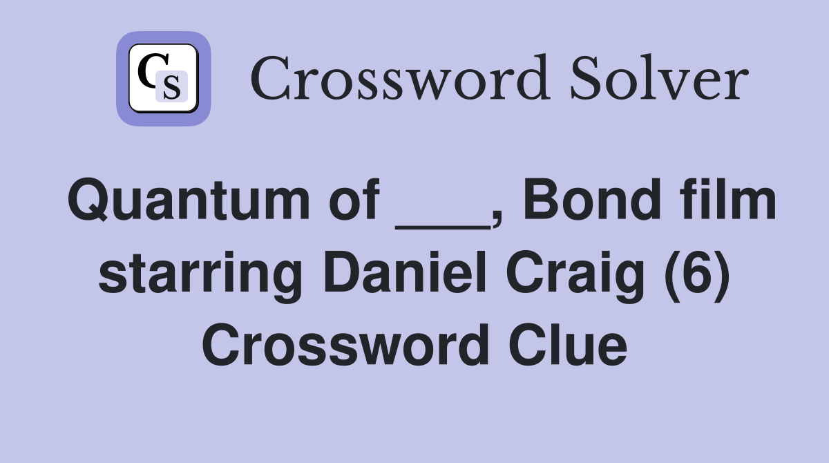 Quantum of Bond film starring Daniel Craig (6) Crossword Clue