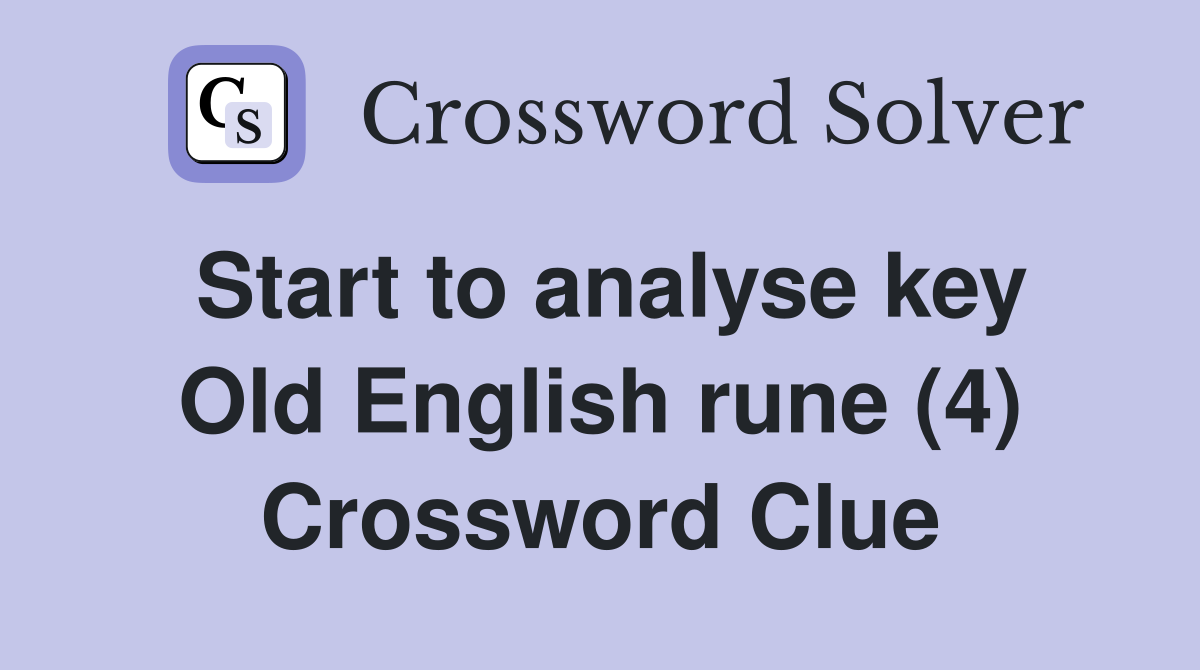 Start to analyse key Old English rune (4) Crossword Clue Answers