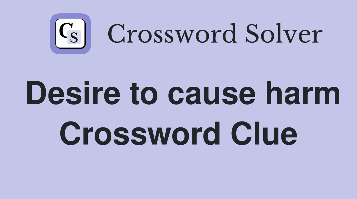 Desire to cause harm Crossword Clue Answers Crossword Solver