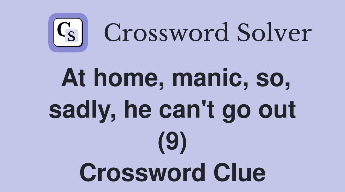 At home manic so sadly he can #39 t go out (9) Crossword Clue Answers