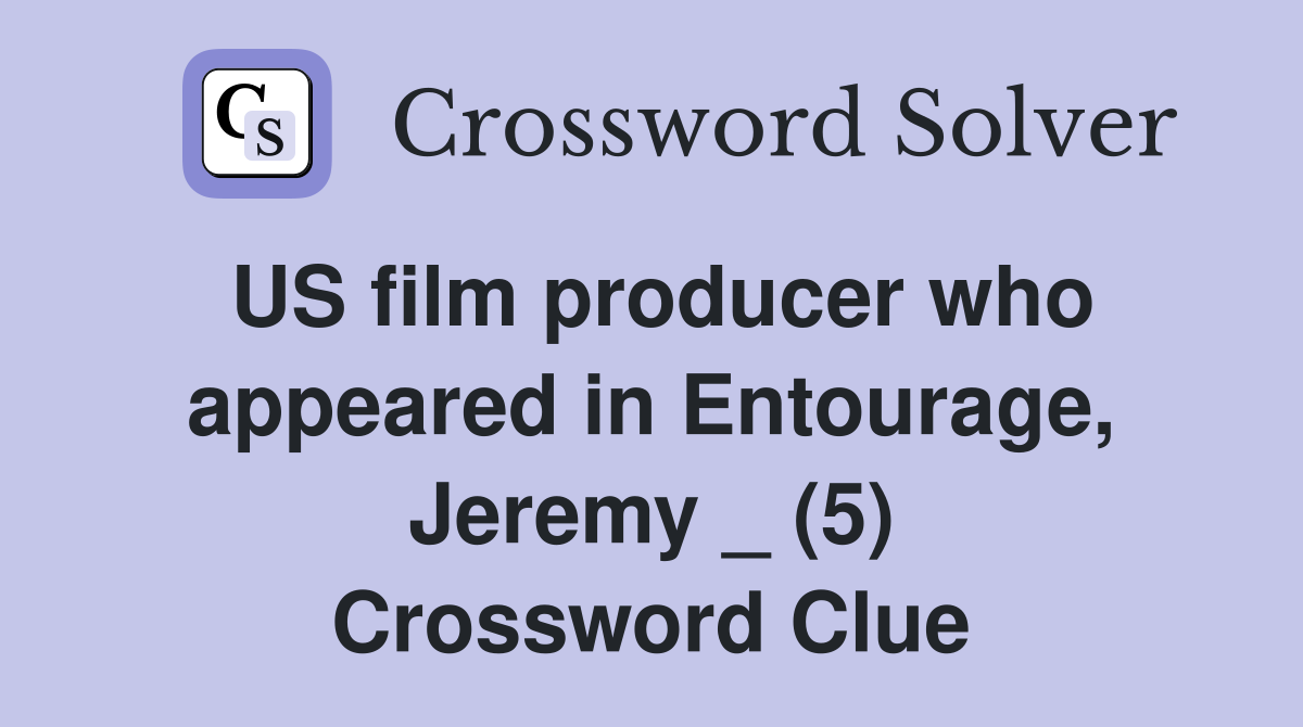 US film producer who appeared in Entourage Jeremy (5) Crossword