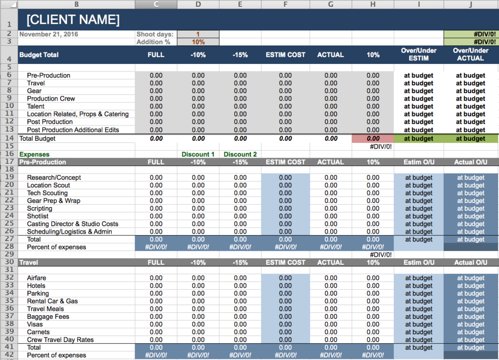 Video Production Budget Template Excel