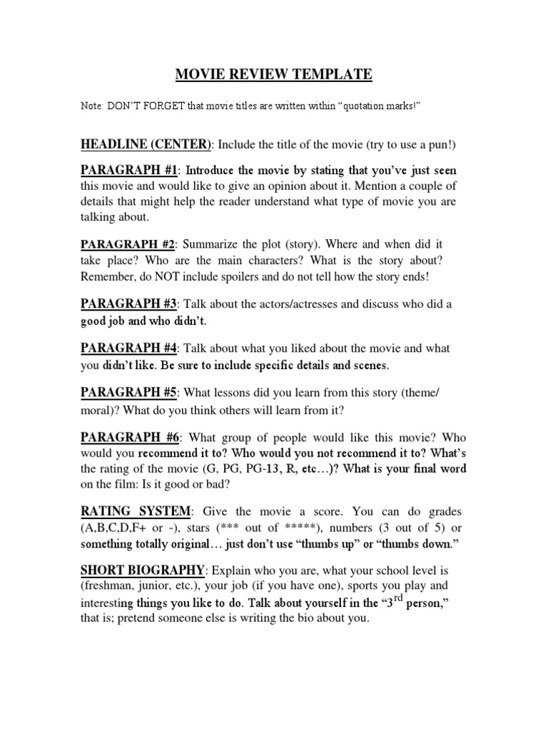 Film review writing template Artofit